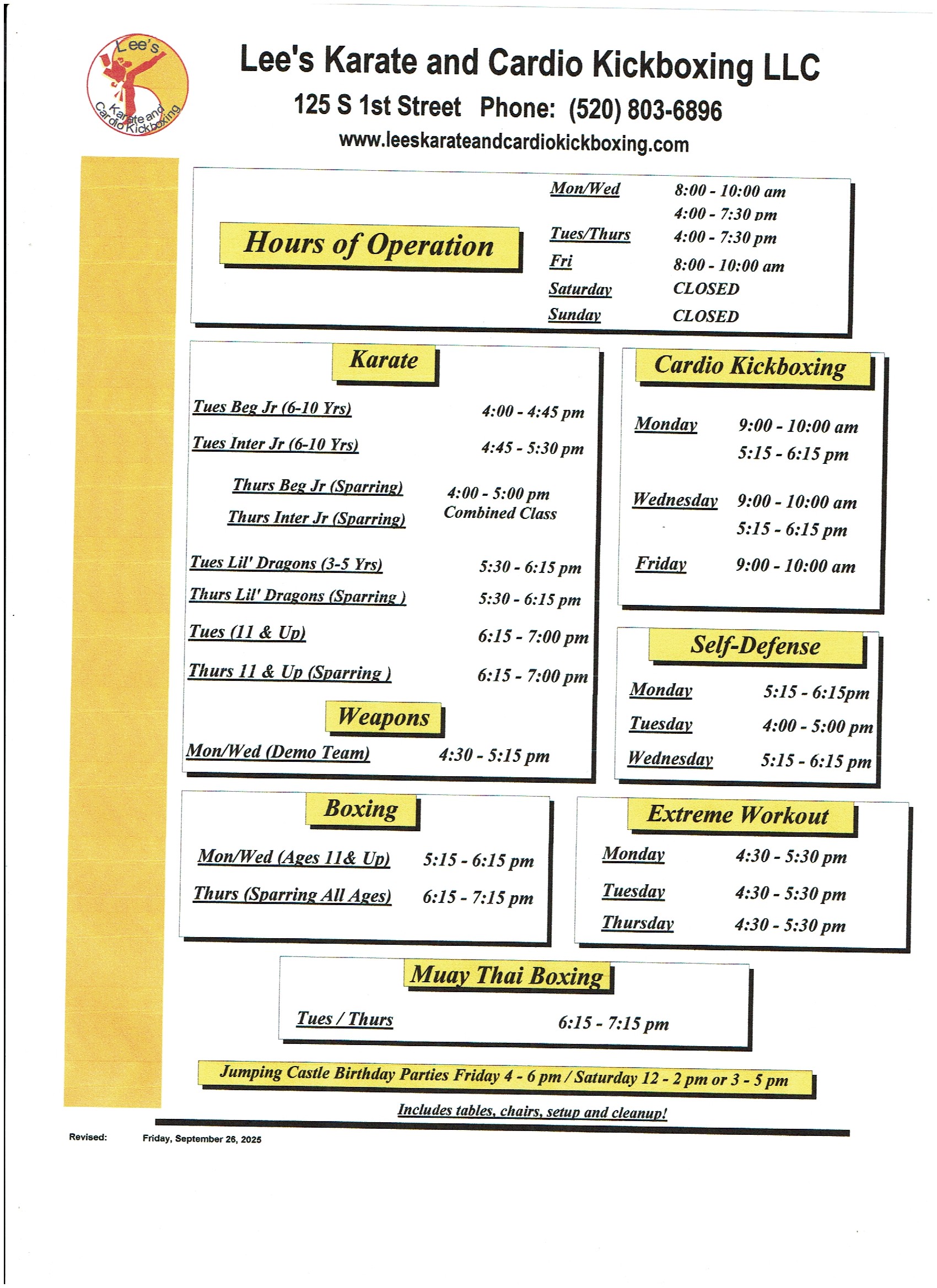 For more information, view or download our class offerings by clicking the 'Schedule of Classes' button below.